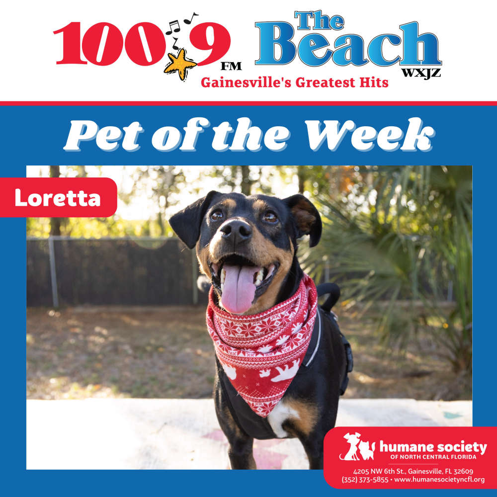 100.9 The Beach and our Pet of the Week from the Humane Society of North Central Florida. Meet Loretta! 💕 She may come across a bit shy at first, but give her just a moment and her sweet, cuddly, spunky personality shines through. Loretta LOVES giving kisses and isn’t shy about requesting belly rubs—fair warning, she will absolutely ask for them! 😄